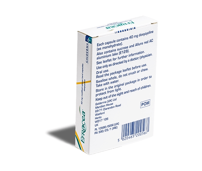 Efracea-kapselit sisältävät doksisykliiniä pitoisuutena 40 mg / tabletti. Kapselien vapautuminen on muuttunut (niin, että ne imeytyvät hitaasti verenkiertoon) ja sillä voi olla anti-inflammatorinen vaikutus ruusufinniin ilman toivottua antibioottista aktiivisuutta muilla kehon alueilla.