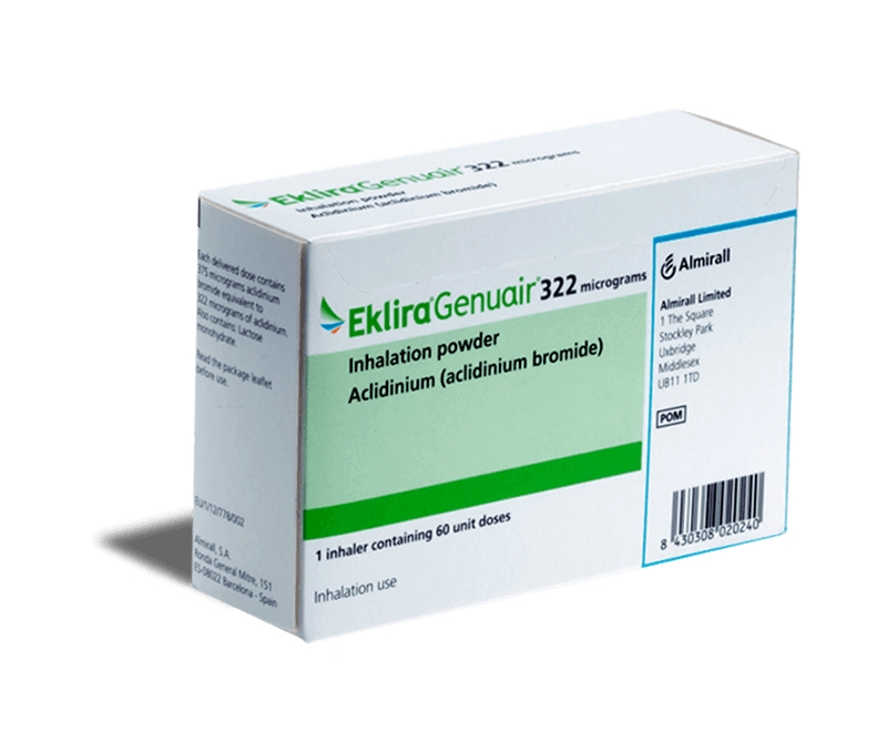 Eklira Genuair, jonka on kehittänyt ja myynyt lääkeyhtiö AstraZeneca Isossa-Britanniassa, on lueteltu antikolinergisenä keuhkoputkia laajentavana aineena. Sellaisena se toimii edistämällä sileän lihaskudoksen hengitysteiden vuorauksen rentoutumista, mikä johtaa niiden laajentumiseen ja siten hengittämiseen.